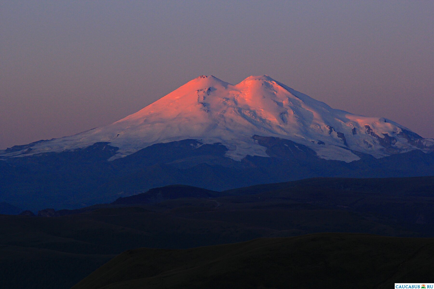 Эльбрус на заре от горы Шиджатмаз.